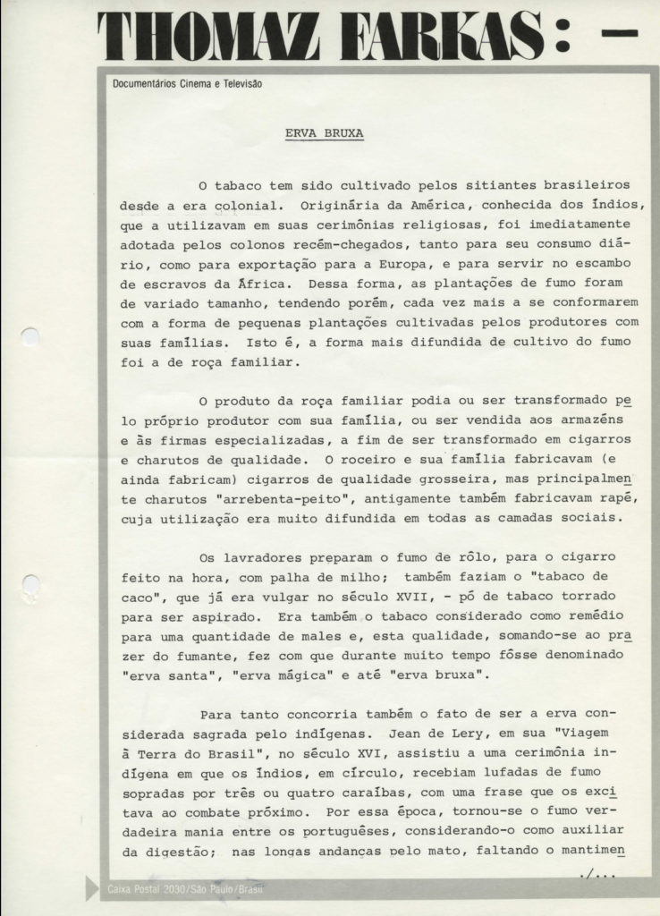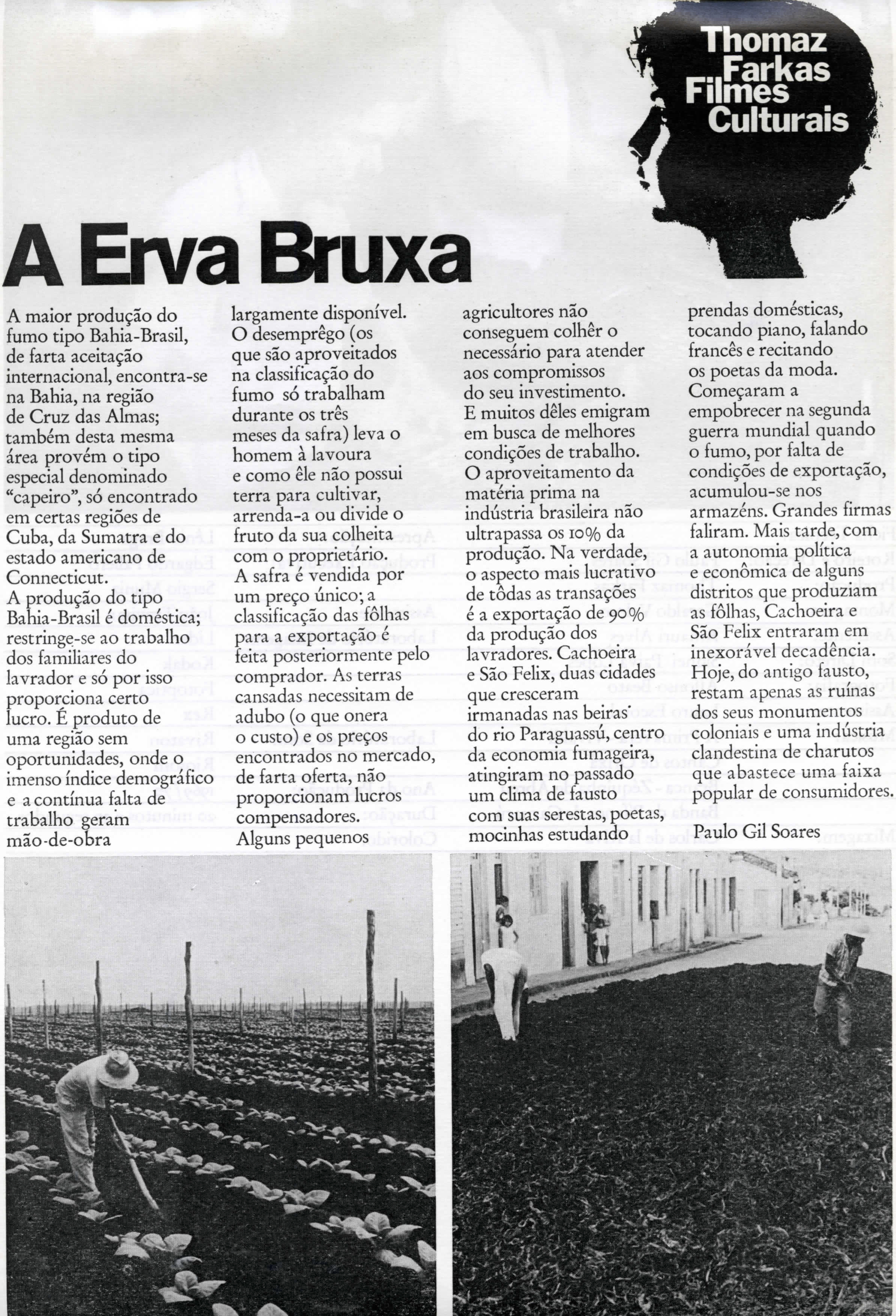 Paulo Gil Soares lembra ainda que em 1969 Farkas voltou a produzir documentários culturais “e lá fomos nós para o Nordeste realizar um ciclo fantástico de filmes que retratava a cultura da região”. Daí saíram Frei Damião, Jaramataia, O homem de couro, Erva Bruxa, A mão do Homem, Vaquejada, “um esforço de produção que nunca mais se repetiu e acredito ser difícil voltar a acontecer”.