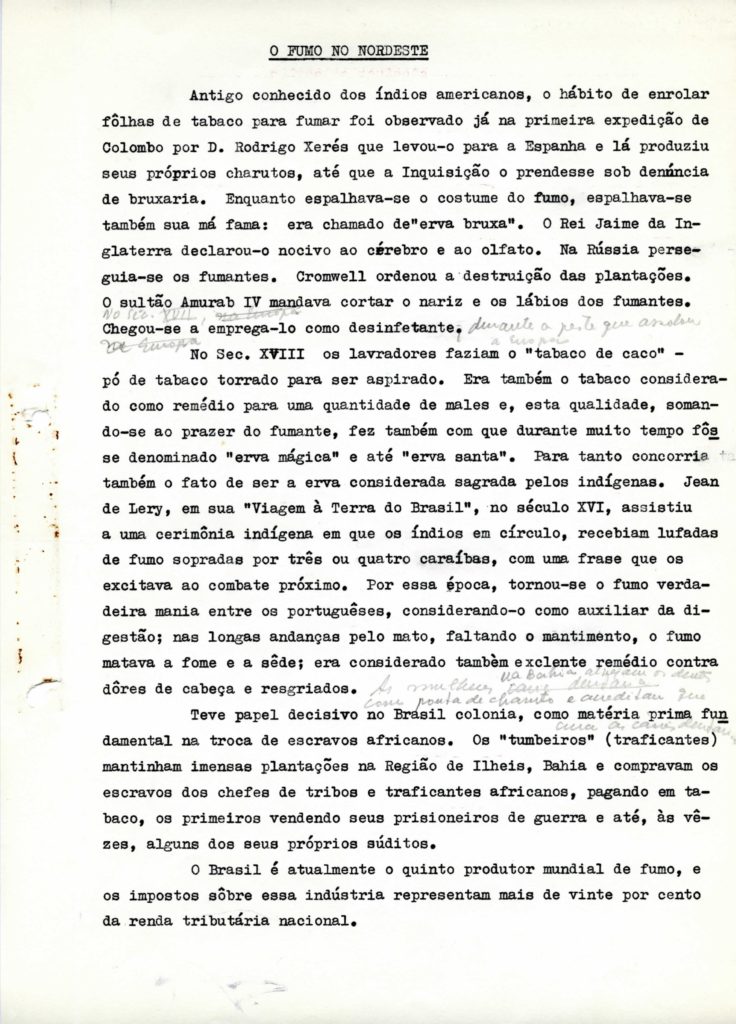 Erva bruxa é o nome popular pelo qual o tabaco também é conhecido. A plantação de fumo por pequenos agricultores em regime familiar na região do recôncavo baiano. O processamento do fumo. O trabalho sazonal que dura no máximo três meses. A classificação das folhas segundo definição do governo federal, trabalho inteiramente manual, que provoca alergias respiratórias e dermatoses nos trabalhadores.